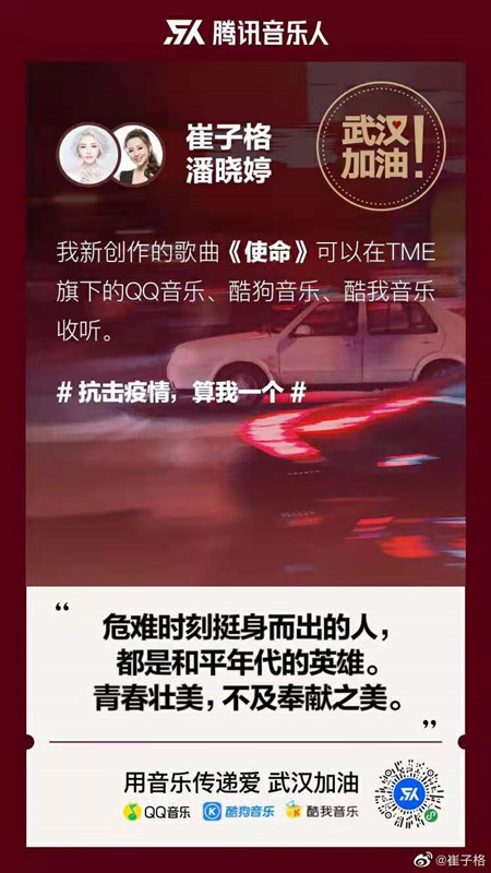 危难时刻挺身而出的人,都是和平年代的英雄!青春壮美,不及奉献之美!在抗疫关键时刻,九球世界冠军潘晓婷与青年歌手——北京现代音乐研修学院毕业生崔子格携手演唱歌曲《使命》,献给奋战在一线的医护人员们,向“牢记使命不负芳龄”的最美逆行者们致敬!《使命》由北京现代音乐研修学院客座教授崔恕作词,梁凡作曲,潘晓婷、崔子格演唱,北音音乐科技学院教师陈沁扬担任编曲和制作人。