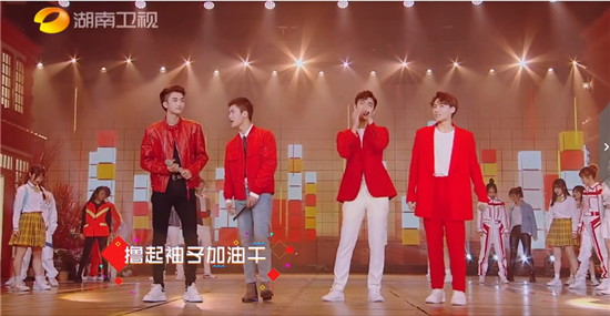 朱星杰与宁桓宇、于湉、张阳阳共同带来歌曲《幸福是奋斗出来的》