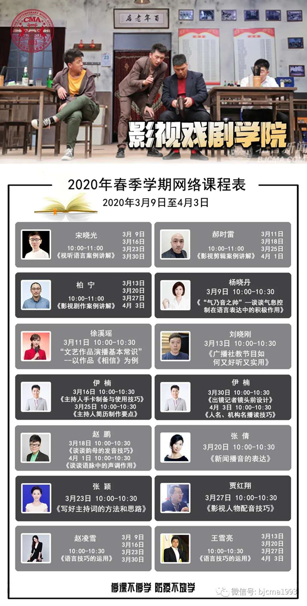 停课不停学,学习不延误。北京现代音乐研修学院第一阶段网络课程自3月9日全面启动以来,北音影视戏剧学院各专业课程如期开课,老师们借用网络授课的契机,通过新媒体平台和网络技术工具,利用互联网语言和热度话题,让课程变得更加活泼有趣,带给学生耳目一新的感受。