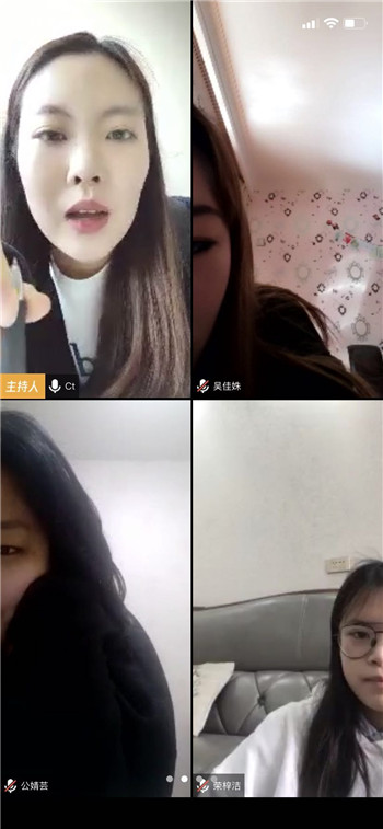 第一次上网课见到同学们很开心很兴奋,感觉有很多想聊的话题,很想念大家。其次网课作为一种新的上课形式,大家都充满了好奇,学生虽然在不同的城市,但是都有一个共同的心愿,就是想早点开学上专业课,特别是毕业生,非常留恋和珍惜跟老师的每次网课的见面,提前早早的就在视频会议里等待着老师的到来,最难忘的是第二次网课,我是10:45的课,40分的时候我进入了会议,学生们说老师您迟到啦,下次希望能早点看到您。