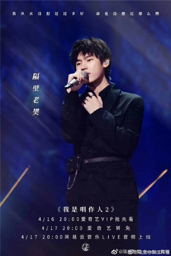 4月16日晚,爱奇艺自制的华语唱作人生态挑战节目《我是唱作人2》迎来首播!北京现代音乐研修学院学子隔壁老樊作为首发嘉宾,带着新作惊喜登场。
