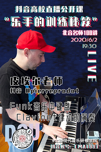 音乐历史最Funky的键盘乐器是什么?怎样更容易有效地练习让自己发展很酷的律动?6月2日19:30,北京现代音乐研修学院官方抖音直播间,北京现代音乐研修学院爵士乐学院外籍教师 Pierre Pradat 将带来《Funk音乐中键盘Clavinet律动的演奏》课程,为您解惑“最Funky的Clavinet”。