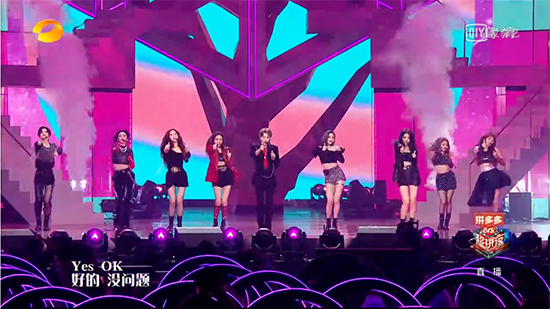 北音附中——北京市现代音乐学校毕业生刘雨昕所在THE NINE 组合则带来了成名曲《YES!OK》和新曲目《猎》。