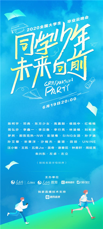 近日,由人民网、人民智云、人民网教育频道、酷狗音乐、咪咕音乐联合举办的“同学少年 未来向前”2020全国大学生毕业云晚会火热开播,三十余位歌手惊喜演出,唱出了当代大学生的热爱与美好。北京现代音乐研修学院学子李鑫一、田燚、钟易轩、嘉羿与何昶希所在组合UNINE带来了精彩的节目。