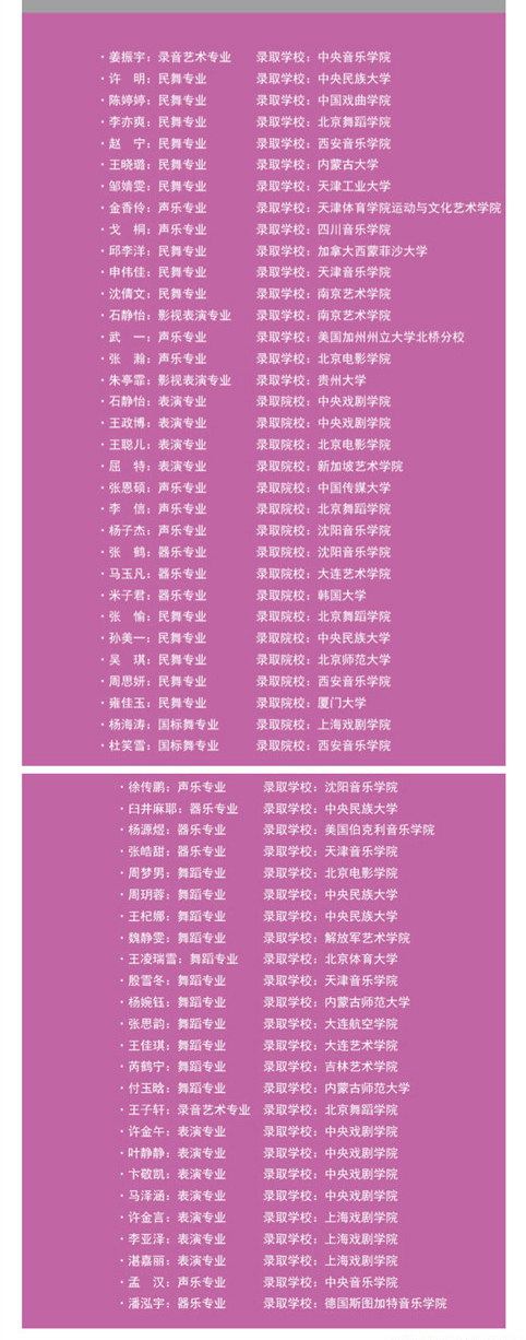 历年北音附中高考榜(部分)