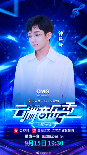 本次《云端音乐季》将采用新媒体直播形式,从9月12日至9月18日,每天19:30通过总台“央视频”客户端及文艺节目中心新媒体矩阵平台进行直播,全国百家电台联动宣传。连续七天的七场音乐会,将由来自知名唱片公司、音乐厂牌的近百位实力唱将和人气新声接力呈现,涵盖流行、民谣、摇滚、音乐剧等多种类型风格,回溯华语流行音乐经典乐章与高光时刻,展现新老音乐人传承发展、与时俱进的创作风貌;总台文艺节目中心各广播频率的人气DJ将携手全国百家音乐(文艺)广播的主持人代表,组成“声”采奕奕的接力主持团,深度参与七天直播内容,联袂推介优秀音乐人及音乐作品,共同助力开拓新时代中国音乐创作和传播的新局面。