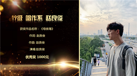 2019级音乐唱作系赵良俊作品《母亲海》获得优秀奖,奖金1000元。