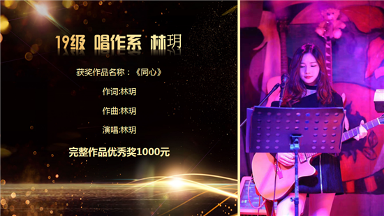 2019级音乐唱作系林玥作品《同心》获得完整作品优秀奖,奖金1000元 ;