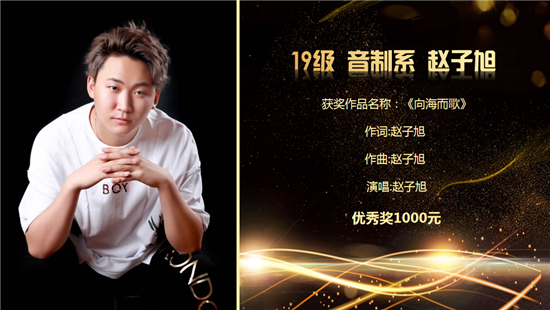 2019级音制系(音乐技术系)赵子旭作品《向海而歌》获得优秀奖,奖金1000元;