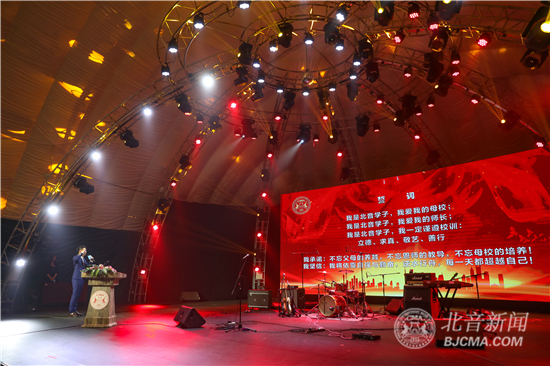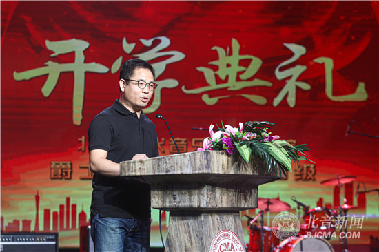 北京现代音乐研修学院爵士乐学院宋军光院长代表学校致辞,他表示:“‘立德、求真、敬艺、善行’是北音的校训,也是每个北音学子的理想和追求。希望同学们在这里起步,度过一段不负自我、不负青春的学习时光,从优秀走向卓越,成为艺术领域所需要的人才骨干!”