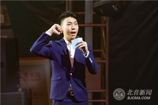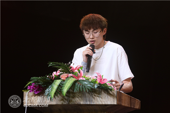 新生代表宋锦煜发言,表达了新生们将“共同追求梦想,倾注北音精神,让平凡的自己变得不平凡”的美好愿景;老生代表仝飞燕发言:“希望学弟学妹们,在校期间可以组建自己的乐队,玩自己喜欢的曲风,不断地提高自己的专业水平和专业素养。”