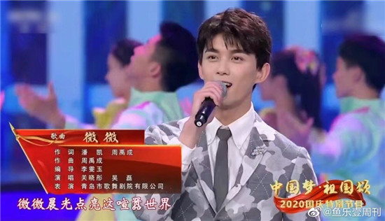 9月30日晚,《“中国梦·祖国颂” ——2020 国庆特别节目》在央视综合频道、央视综艺频道、央广音乐之声、央广文艺之声、央视频、央视网同步播出,北音附中(北京市现代音乐学校)毕业生吴磊携手关晓彤共同演唱歌曲《微微》,带领观众们感受到了中秋团圆的美好。