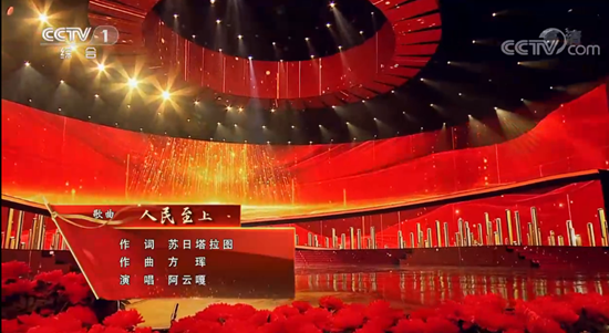 2020年,中国人民用坚韧不拔的气魄,共创出彪炳史册的中国奇迹。与病毒交锋,同洪水搏斗,不畏风雨奋勇向前。晚会上,阿云嘎深情演唱了北京现代音乐研修学院毕业生方珲作曲歌曲《人民至上》,向每一位战役英雄致敬!