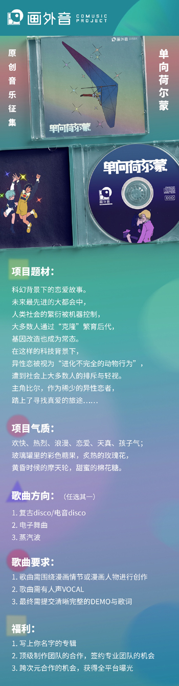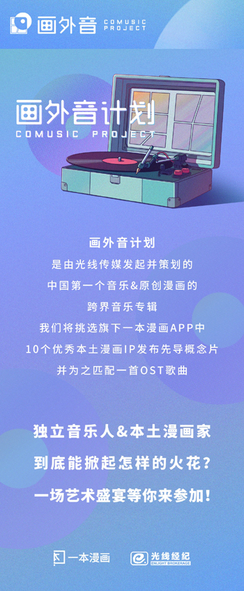 近日,光线传媒旗下“一本漫画”APP发布的画外音计划,向北京现代音乐研修学院学子们发布征集令,征集多部热门小说、漫画等项目的先导曲目。
