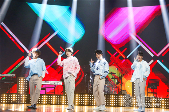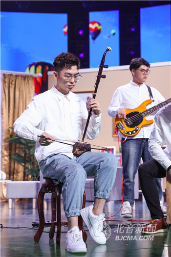 最后,《新闻联播片尾曲》宿舍视频的主人公们——北京现代音乐研修学院音乐科技学院小陈同学宿舍乐队来到了现场,他们曾用水杯、二胡这样普通又特别的乐器搭配吉他、贝斯、鼓的编曲的音乐形式演奏出了陪伴我们几代人之久的声音,特别的音乐迅速登上微博热搜和抖音热搜,甚至被央视新媒体邀请在中秋晚会上表演,与所有中国人共庆双节。现场,他们为大家带来了一曲串烧合奏,像是一场奇妙的能量流动,音乐长了翅膀一样飞进观众们的心中。鼓手丑恩典称,北音能激发自己很多的想象力,如果努力就会发现就是一座金山,能给予你很多很多东西,让自己变得特别强大。