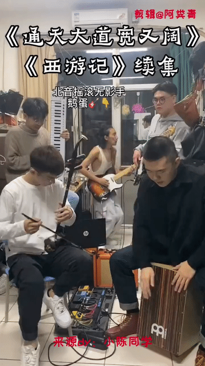 现场,他们为大家带来了一曲串烧合奏,像是一场奇妙的能量流动,音乐长了翅膀一样飞进观众们的心中。鼓手丑恩典称,北音能激发自己很多的想象力,如果努力就会发现就是一座金山,能给予你很多很多东西,让自己变得特别强大。