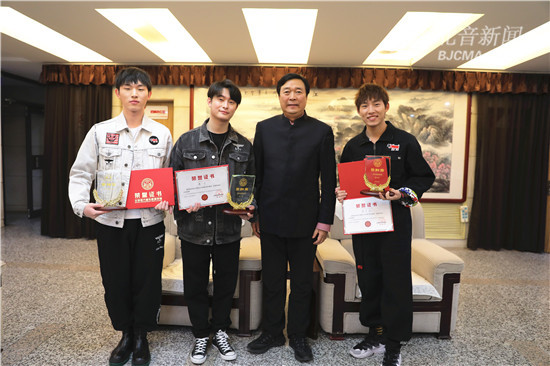 12月10日13:30,《中国好声音2020》全国亚军——北京现代音乐研修学院学子李家豪(主唱)、曹宁(吉他)、蔡辛豪(贝斯)组成的斑马森林乐队荣归母校,看望院长、老师,并接受了记者采访。