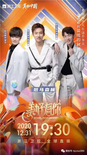 12月31日19:30,浙江卫视“美好有你”2020-2021跨年晚会如约而至,北京现代音乐研修学院毕业生李家豪(主唱)、曹宁(吉他)、蔡辛豪(贝斯)组成的乐队“斑马森林”乐队(《中国好声音2020》全国亚军得主)与“好声音”潘虹共同带来精彩歌曲《第一天》,与众实力演员、歌手、新势力偶像火及节目观众一同温暖跨年。