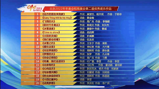 此次第二届冬奥会歌曲征集优秀作品公布的歌单中有四首北京现代音乐研修学院师生作品入选,占据了此次冬奥会歌曲征集的20首优秀歌曲的1/5,这四首歌曲分别是:北音师生共同参与的《冬奥,我们走近你》(北音教师付广慧作词、北京现代音乐研修学院李罡院长作曲)、《十四亿掌声》(李罡院长作词作曲)以及北音音乐科技学院学生创作的《新时代冬奥运》(陈观文作词、刘汉杰作曲)、《Time to shine》(北音音乐科技学院学生胡启辉作词作曲)。