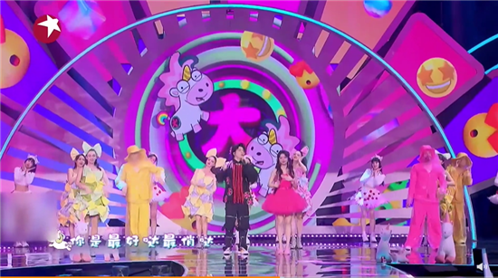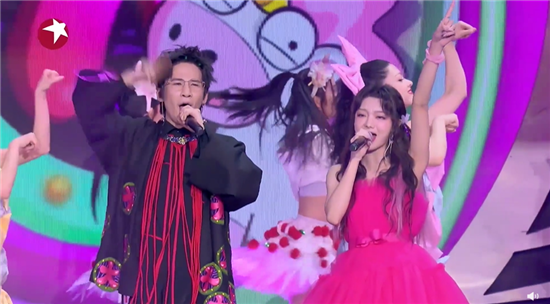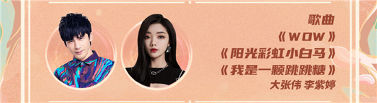 晚会上,北音流行演唱学院学生李紫婷携手大张伟,《WOW》、《阳光彩虹小白马》、《我是一颗跳跳糖》三曲联唱嗨翻全场!大张伟老师活力十足少年音搭配李紫婷粉嫩公主裙,欢乐歌舞气氛温馨甜蜜又火热。