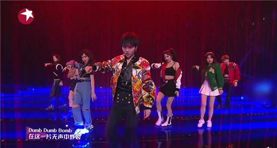 北音附中毕业生刘雨昕所在THE9组合携新歌《Dumb Dumb Bomb》唱跳舞台登场,干净利落的舞姿与绚丽的灯光交相辉印,身着棒球服超飒!现场氛围直达燃点!