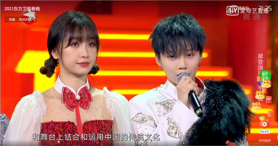在新式海派旗袍秀互动环节,刘雨昕代表THE9发言,向传统文化致敬。同时,身穿海派旗袍的THE9成员们,为观众带来了一首充满上海风味的情歌《玫瑰玫瑰我爱你》,声线细腻温柔,舞台娇俏可爱,精彩无限。