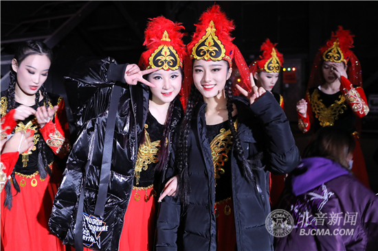 此次在舞台上为古丽迪娅尔老师助演和伴舞的共有马莉、 丘书璟、万思雨、 张伊萌、 暴俊玉、 傅诗楠 林骞 、李姝坤、 谢雅、 彭媚燃10名北音中国舞系的学子,她们富有张力的表演配合古丽迪娅尔卓绝的舞姿,将大家带到了美丽的新疆,展现出了北音学子稳定扎实的专业技术。