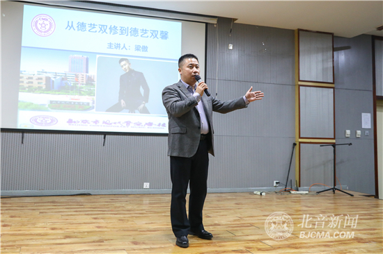 3月25日晚,北京市现代音乐学校(北音附中)优秀毕业生、知名动作演员梁傲回到母校,与学弟学妹们分享了自己的成长及成才经历。