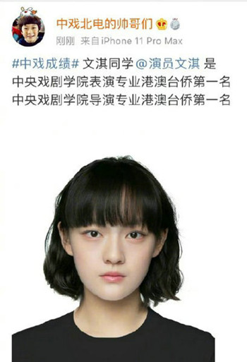 近日,各大院校艺考成绩陆续公布,北京市现代音乐学校(北音附中)2018级表演专业学生文淇获得了中戏双料第一好成绩:文淇不仅是中央戏剧学院表演专业港澳台侨第一名,也是导演专业港澳台侨的第一名(中戏留学生、港澳台侨考生成绩单独排名与公示)。