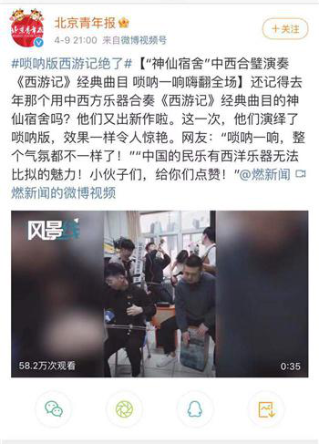 负责编曲的小陈同学介绍,他们都是同一个寝室的同学,平时经常会将一些曲子进行改编,进行二度创作。小陈表示,大多数人会认为二胡特别悲伤、唢呐吹得很辛酸,但他们想通过中国传统乐器和西洋乐器的碰撞,重新演绎一些中国经典音乐作品,以此来改变传统看法,也想借此来推广中国的传统乐器。