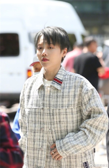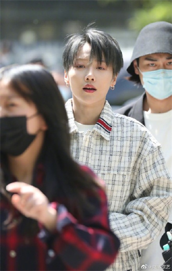 刘雨昕着飒酷格纹衣现身录制现场
