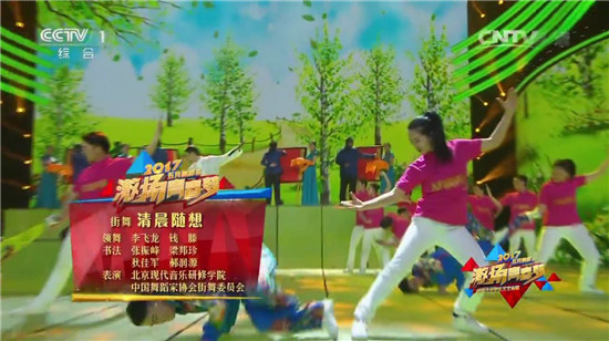 2017年5月4日晚8时,中央电视台“五四”全国大中学生文艺晚会《五月的鲜花》活力上演,TFBOYS、鹿晗、张艺兴等新时代高颜值青年演员与来自全国68所院校近2000名大中学生共同带来昂扬向上、青春励志、激情澎湃的文艺表演。北京现代音乐研修学院现代歌舞系七十名学子受邀表演《清晨随想》街舞节目,这是街舞表演类节目第一次登上该舞台。北音学子用青春和热情舞动着,专业的舞姿,炫美的特技,时尚与古典结合的编舞,赢得现场观众掌声阵阵,成为晚会亮点之一。