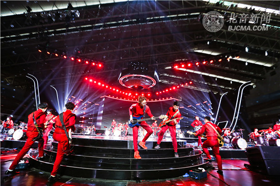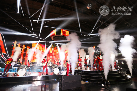 随后,由鼓手、吉他、贝斯组成的北音爵士乐学院爵士乐团与著名艺人尹正、王嘉一起重现经典歌曲《红日》。
