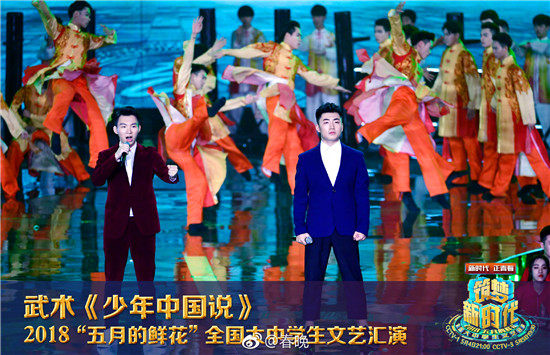北京现代音乐研修学院流行演唱学院爵士演唱系优秀毕业生、《中国好声音》第三季小组四强徐剑秋和来自中国传媒大学的李昱达共同演唱歌曲《少年中国说》,该歌曲与120多人的中国传统武术表演相结合,共同演绎展示中国新时代少年朝气蓬勃、奋发图强的精神风骨。