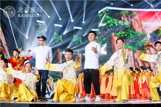 “少年自有少年狂,身似山河挺脊梁,敢将日月再丈量,今朝唯我少年郎……”,气势雄浑、激扬向上的演唱,与场上少年武术团、青年武术团120人打桩、飞身、十八般武艺样样展现的武术表演相互交融,以歌曲和武术相结合的形式展现中国风,唱响了“少年要自强、自立,要做一个顶天立地,有责任、有担当的人”的时代主题。