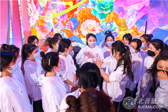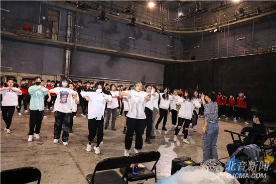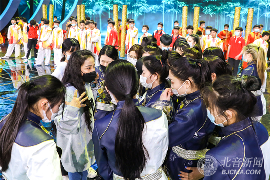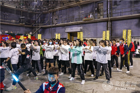 彩排时,同学们与山东莱州的中华武校团队和少林寺的武僧团队一起表演,武校同学们帅气的武术动作再加上威亚技术,表演起来相当精彩。同学们在感叹武校好厉害的同时也暗暗为自己加油:“好好表现,我们也很棒!北音加油!”在每一次排演中,同学们憋着这股劲儿,把每一个动作都练到极致、做到极致,稳定发挥平时所学,展现出了极好的专业水准和综合素养,为学校、为自己赢得了认可和掌声。