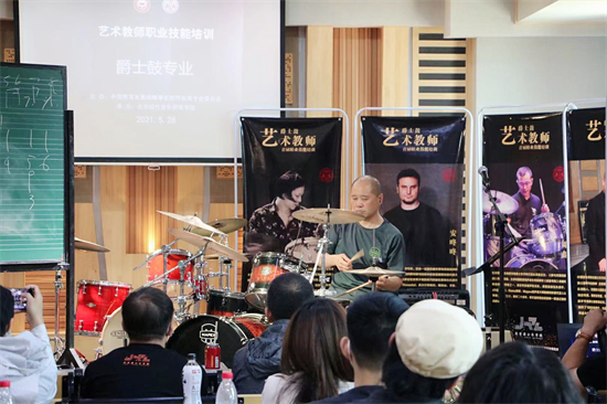 由中国教育发展战略学会教师发展专业委员会主办的首届艺术教师职业技能培训(现代音乐类)于5月28日-6月4日在艺术教师职业技能培训基地——北京现代音乐研修学院圆满举行,本期培训涉及华语演唱、欧美演唱、爵士演唱、流行舞、爵士鼓五个专业,开设了教育学、教育心理学、视唱练耳以及流行声乐、流行舞、爵士鼓专家指导课,二十多名现代音乐教育专家通过教学测评、心理引导法、课程设计与导入、表演与教学的关系等课程牢牢吸引住了所有的学生,全程学习无请假无缺席。通过系统培训,受训者在教学理论、教学技能技巧、教学实操等各方面都得到了提升。