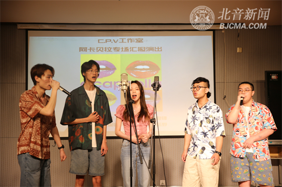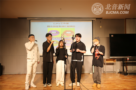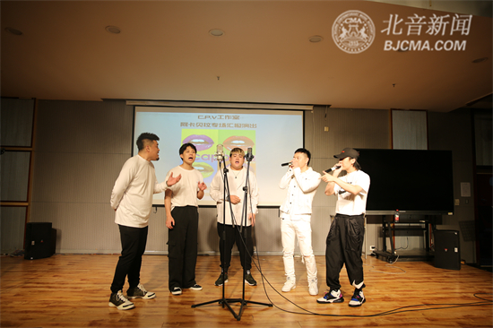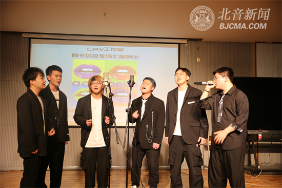 近日,北京现代音乐研修学院C.P.V工作室阿卡贝拉专场汇报演出在地下报告厅精彩开唱,声海无伴奏合唱团、8:30不准时、战斗机合唱乐团、bigbabol人声乐团、Channel 5组合以及C.P.V工作室师生团带来《in the still off the night 》、《看月亮爬上来》、《down》、《北京一夜》、《龙的传人》、《王妃》、《butter fly》、《Havana》《attention》、《万物生》、《talk dirty》一系列阿卡贝拉音乐作品,以极具魅力的嗓音和富有感染力的表演,带领大家沉浸在“阿卡贝拉”的人声天籁中。