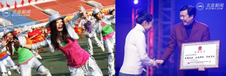 2009年10月1日,北音国际舞蹈学院80名学生受邀参加了首都各界庆祝中华人民共和国成立60周年联欢晚会演出。在天安门广场上,北音学子身着银色服装,鳞片闪闪,跳着最流行的街舞把最精彩的表演献给伟大的祖国,圆满完成了国家交给的任务,向世人展示了北音人的风采。为表彰北音在此次演出活动中做出的突出贡献,首都国庆60周年北京市筹备委员会联欢晚会指挥部向北音颁发了“祖国庆典创造辉煌贡献突出”金匾。