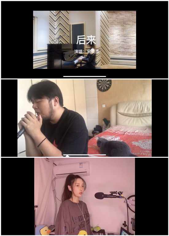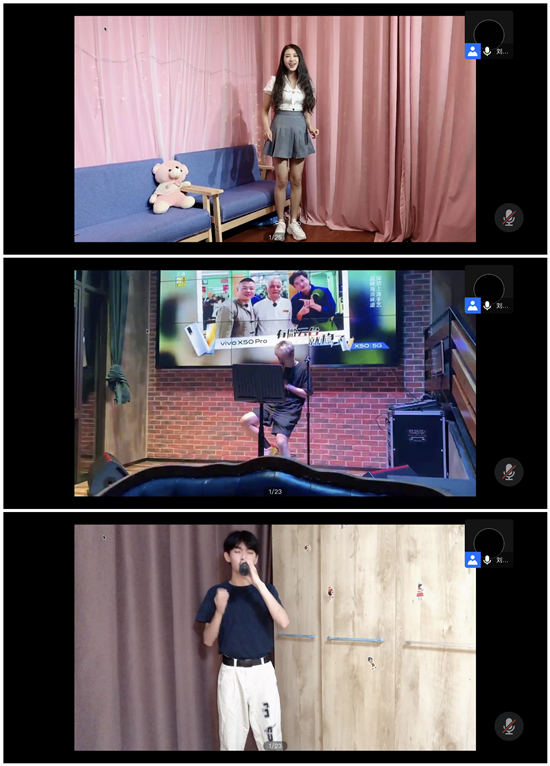 从一帧帧画面里可以看到,同学们对于比赛足够用心,身在家中的他们没有特别专业的设备和舞台,但是这并不影响他们的热情和专业度。尤其在爵士演唱系和华语演唱系主办的“声为歌狂”音你而来——云唱响歌手大赛和“云上声华”歌手比赛现场,大家不仅录制了自己演唱的节目,还根据演唱内容和心情感悟,将视频更完善化和剧情化,更有不少同学在视频中传递了对亲人、朋友和对学校、对国家的爱和坚持,体现了新一代大学生的家国情怀。