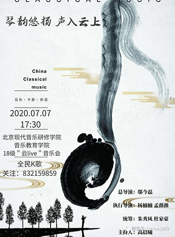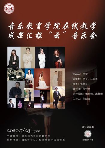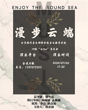 2020年6-7月是北京现代音乐研修学院线上、线下同时、同步、同质量教学的第四、第五阶段,学院开发推进了大量北音云端赛、云端音乐会等新的云艺术实践形态。其中,北京现代音乐研修学院音乐教育学院举办了“北音记忆”基础理论部教学成果云竞赛、绽放“云Live”音乐会、漫步云端“云Live”音乐会、琴韵悠扬声入云上“云Live”音乐会、云上诉“云Live”音乐会、“云”音乐会教师音乐会等系列线上直播,丰富了多角度教学体验,增加了师生多层面互动。