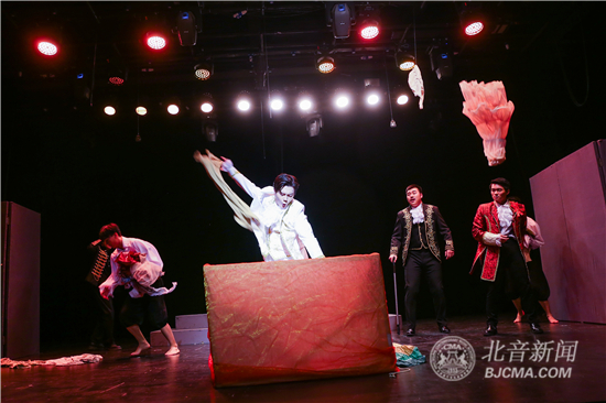 11月25日晚,北京现代音乐研修学院影视戏剧学院表演系同学们在黑匣子剧场带来了《窗户上的尸体》《温莎的风流娘们》《楼梯的故事》三个“外国经典剧目”选段精彩演出。有趣的改编和演绎,让观众捧腹大笑的同时,享受了一场视觉和精神上的盛宴。
