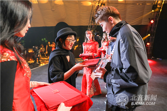 在原创音乐作品组决赛评比之后,本次大赛各组别获奖作品的颁奖典礼在现场隆重举行,太合音乐集团副总唐喜乐女士、音乐科技学院院长王磊、副院长郭好为等嘉宾及领导为获奖同学颁奖。