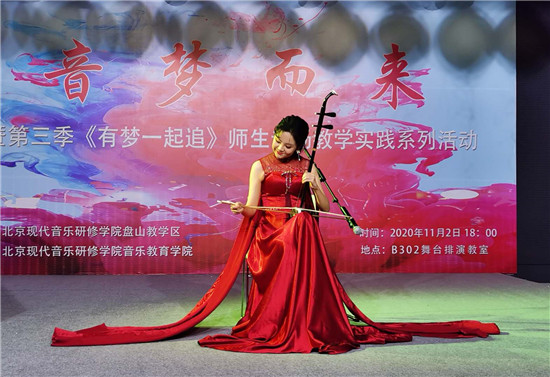 自10月底以来,北京现代音乐研修学院盘山教学区成功举行了第三季《有梦一起追》师生专场演出暨教学实践系列演出活动,北音流行演唱学院、北音国际舞蹈学院、北音音乐科技学院、北音音乐教育学院已分别圆满完成了《新声驾到》《新人新秀》《唱作先锋》《音梦而来》教学实践演出,四场演出均获得了师生好评。