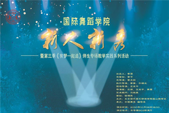 第三季“有梦一起追”师生专场演出暨北音盘山教学区系列教学实践活动,由北音流行演唱学院、北音国际舞蹈学院、北音音乐科技学院、北音音乐教育学院共同协办,自10月底开始启动,包含《新人新秀》《音梦而来》《唱作先锋》《新声驾到》以及由以上四场演出精选节目组成的师生综合场共计五场演出,活动旨在展示师生风采,激发教与学的活力,强化艺术实践,培养复合型人才,打造高质量的精品节目,对深化和拓展课堂教学起到了重要推动作用。