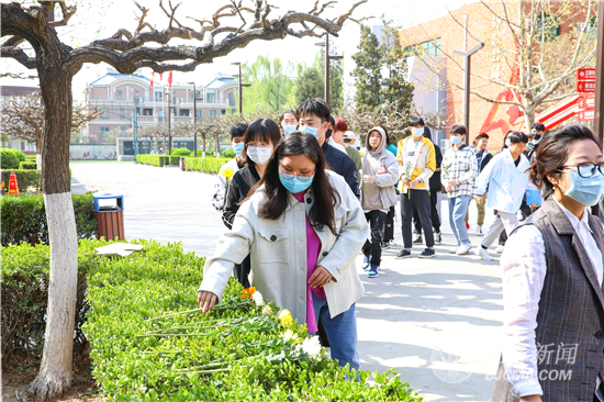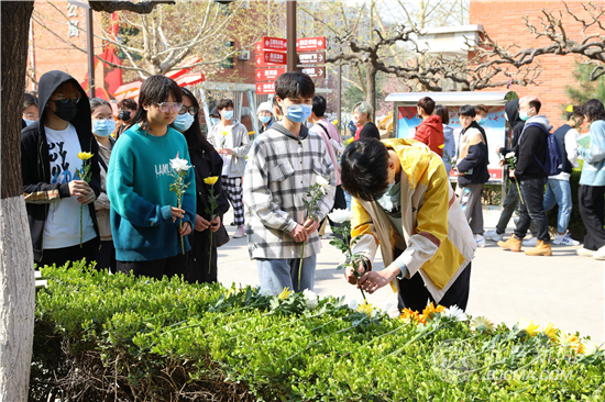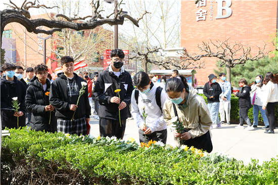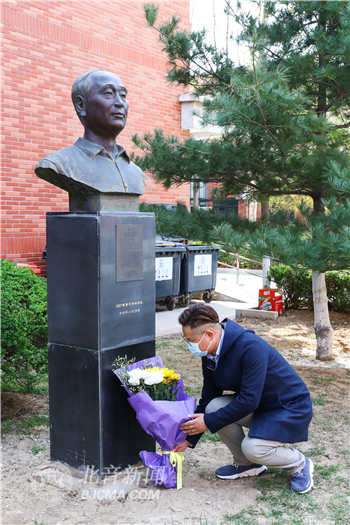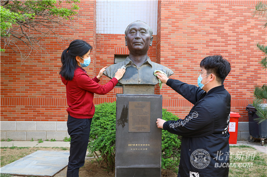 4月6日上午,为纪念北京现代音乐研修学院音乐科技学院(原音乐传媒学院)前任院长赵力士先生逝世十一周年,北音音乐科技学院师生代表来到赵力士铜像前举行祭扫仪式。擦拭头像,鞠躬,献花,音乐科技学院的师生们用最传统、最精诚的形式追思、缅怀这位把自己生命中最灿烂、最宝贵的年华献给祖国、献给教育事业、献给北音的音乐教育家。