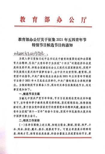 此次参演《2021年五四青年节特别节目》,北音人定将一如既往全力以赴,不负使命!