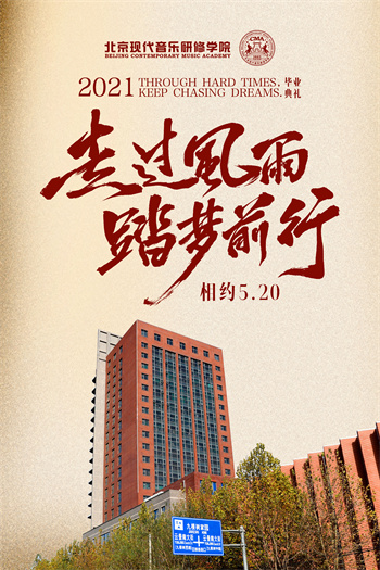 北京现代音乐研修学院“走过风雨 踏梦前行”2021毕业典礼将于5月20日在校隆重举行。日前,毕业典礼主题海报已官方发布。