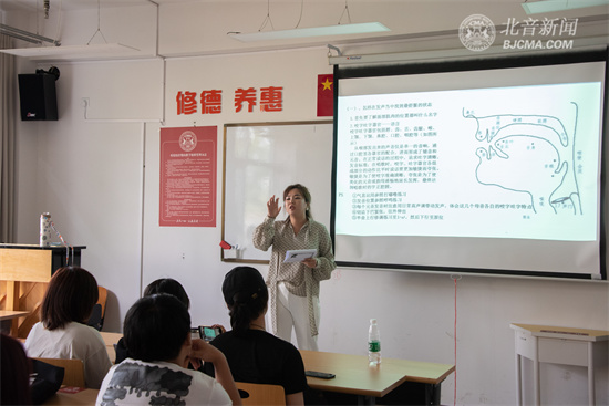 北京现代音乐研修学院2020-2021学年度第二学期公开课持续进行,北音流行演唱学院华语演唱系教师何伊如老师公开课《关于在演唱当中面部肌肉的控制》在盘山校区B208教室精彩开讲。课上,何伊如老师从“怎样在发声当中找到最舒服的状态”、“如何运用在唱练习曲以及唱歌中的面部状态”、“面部肌肉放松在演唱当中的重要性”、“延伸更多的演唱情感变化”四个方面对“演唱当中面部肌肉的控制”进行了详细讲解。