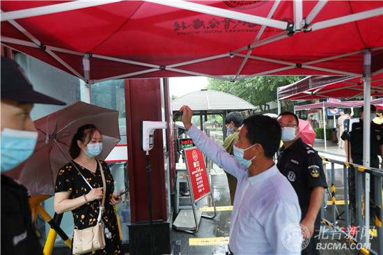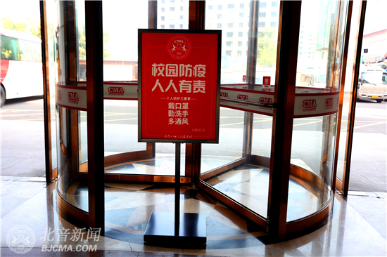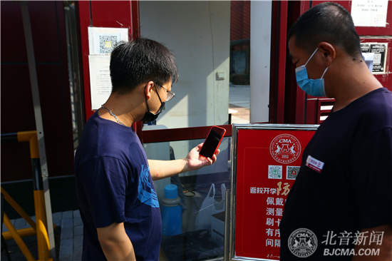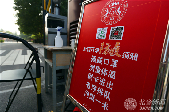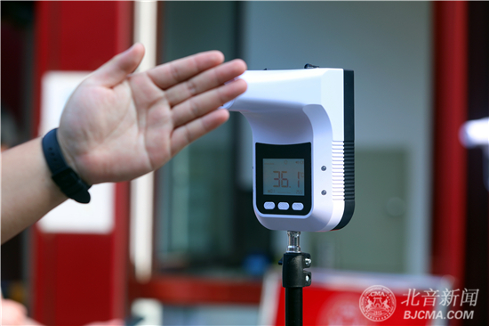 新生报到大厅、教学楼、综合楼、舞蹈楼、琴房楼、考场入口、食堂入口等各处均设置了智能体温检测点,全天候进行实时体温监测,百余人的党员先锋巡逻队,定时巡逻校园,为校园防疫安全保驾护航。